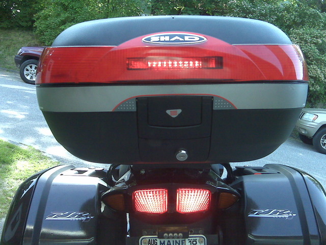 I have had the Shad top case for a couple of years now and I really like it. It is solidly built, watertight, and allows me to commute to work and not worry about my laptop getting rained on. The Shad SH46 has a spot for a brake light kit that I didn’t purchase with the case. Looking back, maybe I should have at the time, but I wasn’t sure it would be worth the expense. Now the light kit is about $50, and other LED brake lights I have seen on line cost upwards of $150. I have been hankerin’ to make use of that brake light slot, but I didn’t like the idea of paying big money to do it.